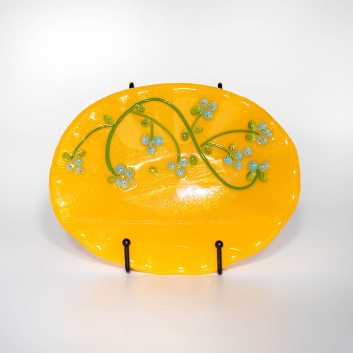 Bowl - Bright yellow oval dish with scalloped edge and blue flowers![]()  - Regular price